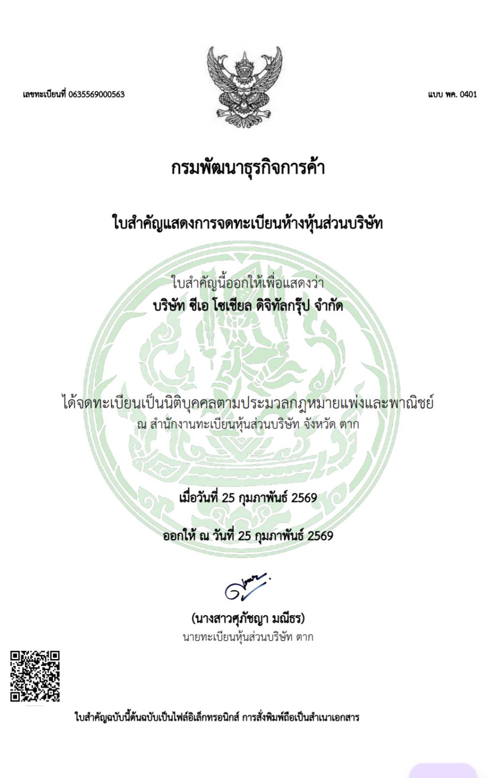 วันที่จดทะเบียน: 25 กุมภาพันธ์ 2569